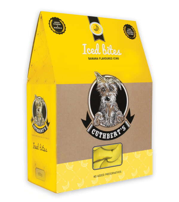 Cuthbert’s Banana Iced Dog Biscuits are tasty crunchy treats made for rewarding and spoiling your dog. These biscuits combine a delicious banana flavour with a lightly iced coating that dogs find irresistible.